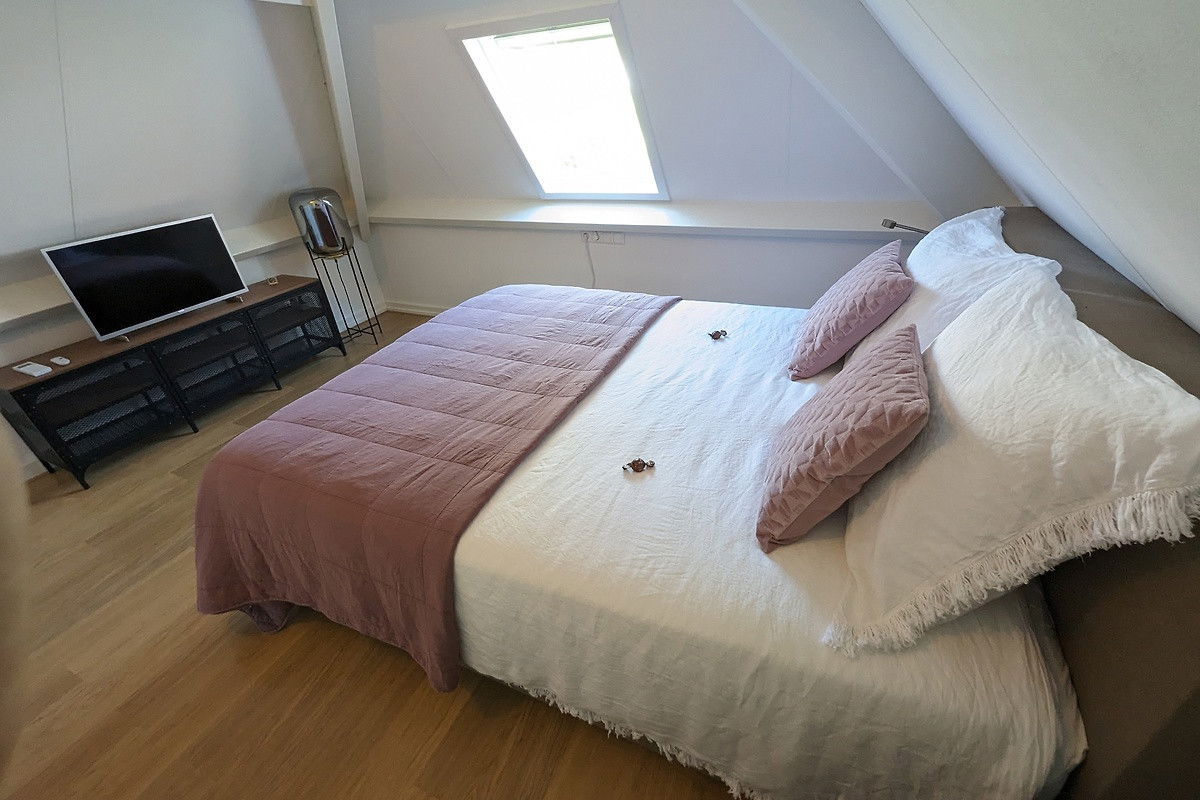 De locatie was erg fijn, de ruimte om het huisje had verschillende zitjes. Gastheer was sociaal en prettig. Bed is goed. Van alle gemakken voorzien.